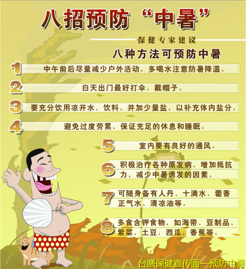 ③ 給予中暑者補充水分和無機鹽類,或靜脈補液。或送往就近醫院進行搶救。