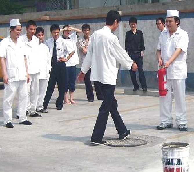 A.加強對廚工進行消防知識教育、滅火技能的培訓,每年要進行不少于一次的消防演習。
